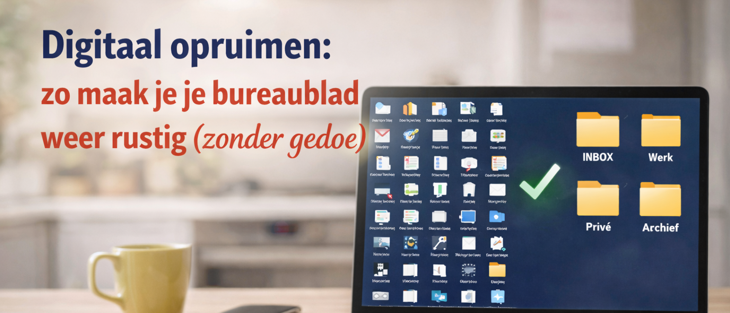 Digitale rommel is óók rommel. Alleen kun je het niet in een vuilniszak proppen. Je sleept het mee in je hoofd. En dat is precies waarom je moe wordt van “even snel werken”.